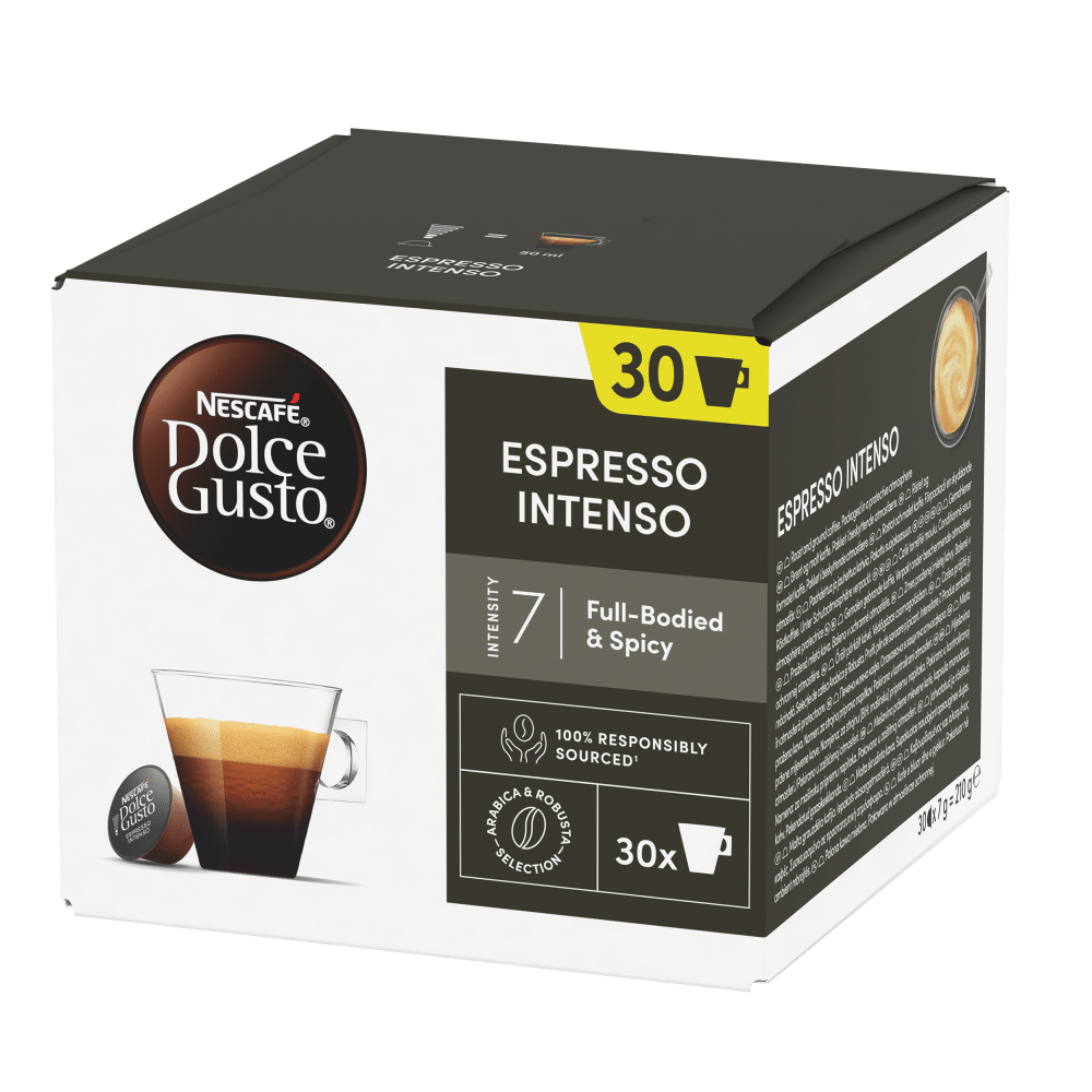 Dolce Gusto Espresso Intenso. Klein, stark und intensiv. Kaffee-Puristen werden diesen Espresso lieben, denn der kleine Schwarze überzeugt mit feiner Crema.