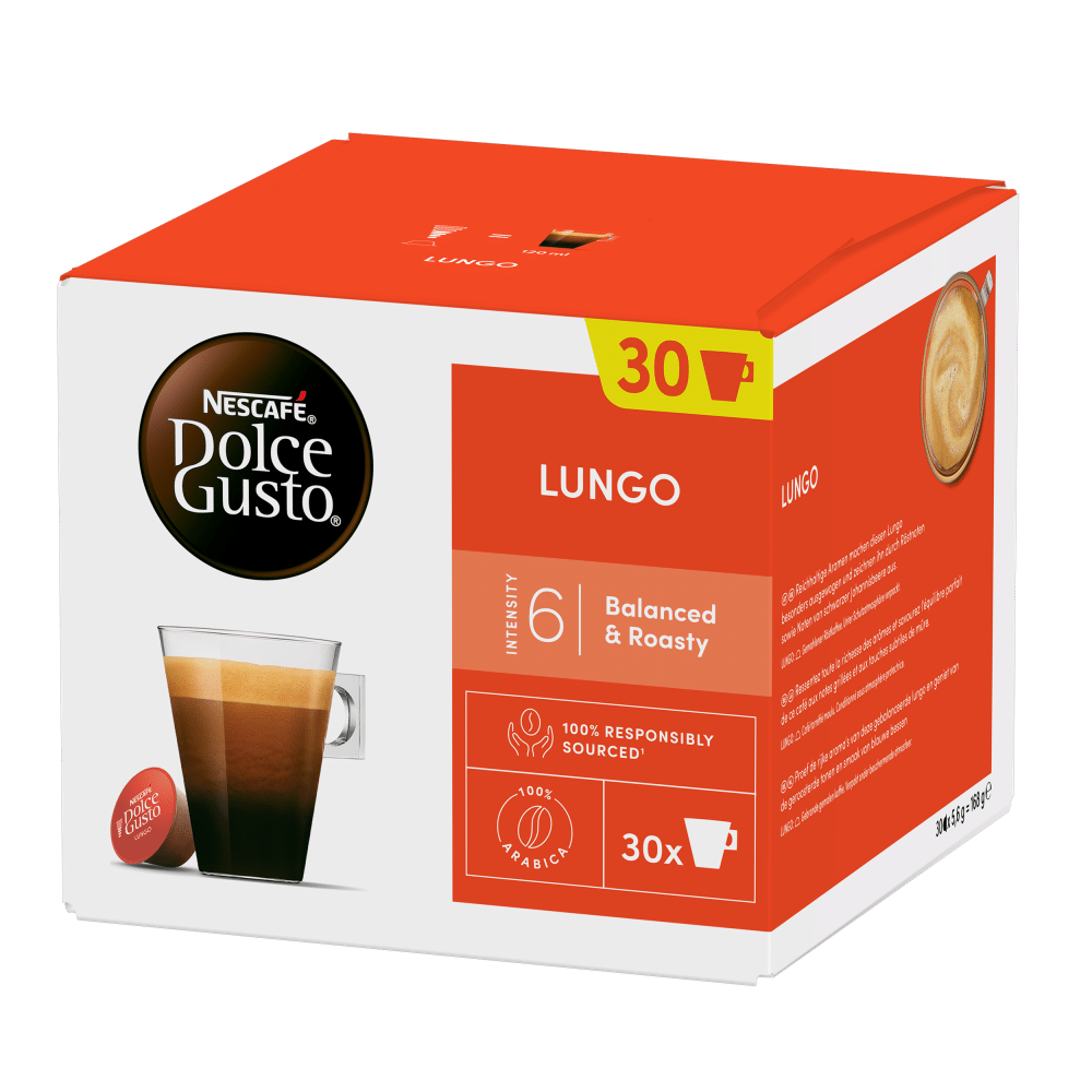 EAN: 7613037882926 Artikelnummer: 252 Kategorien: Kaffeekapseln, 100% Arabica-Kaffee, Dolce Gusto Marke:NescaféNescafé Dolce Gusto Lungo XL 30 Kaffeekapseln